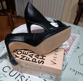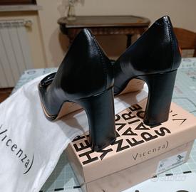 scarpe décolleté nuove con scatola, in vera pelle colore nero,misura 38,altezza tacco 9 cm, marchio Vicenza,con dust bag.Mai indossate.