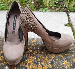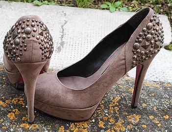 Vendo causa inutilizzo scarpe color tortora tg 39 con plateau e borchie sul retro tacco 12cm circa.