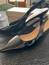Scarpe décolleté con tacco basso - Finitura lucida - Design a punta - Modello slingback con cinturino posteriore