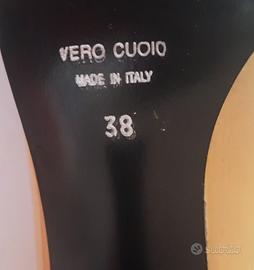 Un paio di décolleté Viamaestra in pelle verniciata con fibbia e tacco medio, altezza 9cm. Scarpe mai indossate. Hanno una piccola macchia sopra il tacco (vede foto).