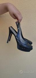 Scarpe décolleté senza punta Guess by Marciano con tacco a spillo 10cm, modello peep toe (anche detta spuntatina). Le décolleté presentano qualche leggero difetto (visibile in foto) dovuto all'utilizzo ma non visibile quando si indossano.