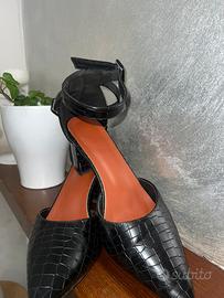 Scarpe Décolleté Slingback Nere Effetto Coccodrillo - Tacco 7 cm - Stradivarius