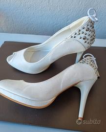 Scarpe decolletè bianche in pelle Misura 37 tacco 9 M, Bellucci