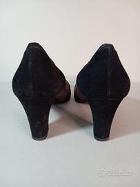 Paio di scarpe in pelle nero/tortora eleganti e comodissime . Leggero elastico sulla caviglia per il massimo confort. Tacco 7 cm. Marca Valleverde. come si nota presente gomma di qualità sotto il tacco e la suola. Soletta sagomata nella migliore tradizione Valleverde. Spedisco.
