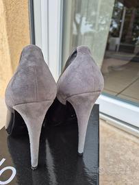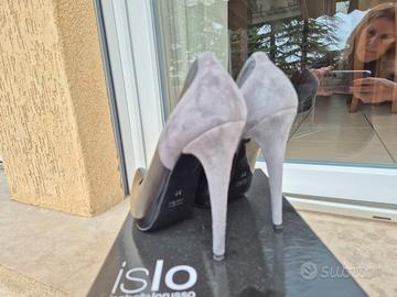 Bellissime decolté donna originali ISLO in vera pelle nera e scamosciata grigia e cuoio nuove con scatola originale tacco alto a spillo e leggero plateau davanti n. 37.