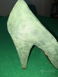 scarpe decolte' in camoscio verde bottiglia con zeppa