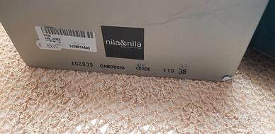 Vendo per inutilizzo bellissime scarpe decolté n. 38 (pianta stretta), camoscio vera pelle toupe, tacco molto alto ma con zeppa, quindi comodissime, brand "nila&nila" made in Italy, comprate e mai calzate, quindi nuove. Spese spedizione a cura dell'acquirente. Vero affare. No Perditempo