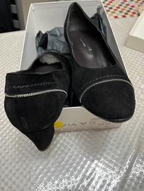 Scarpe nere in camoscio con decorazione n.39. Cinzia Valle confort
