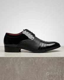Scarpe Derby Nere Cap Toe Vernice e Rombi