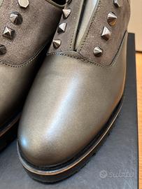 ✅Color verde-grigio lucide, in pelle e scamosciato brillantinato con borchiette,