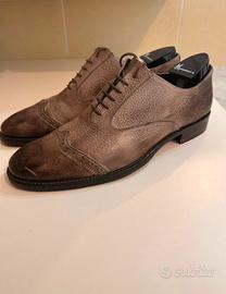 Scarpe eleganti da uomo in vera pelle martellata color marrone taglia 43. Modello Derby con dettagli brogue, perfette per chi cerca uno stile classico con un tocco distintivo.