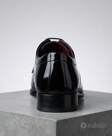 Scarpe Derby Vernice Nera con Dettagli Brogue