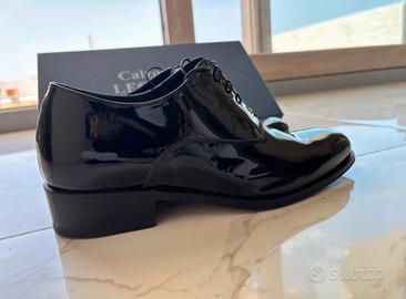 Scarpe eleganti per cerimonia (anche per sposo), mai utilizzate. Prodotte a mano. Presentano un rialzo interno invisibile di 3 cm, che, insieme al tacco, assicura un aumento dell’altezza totale di 7 cm.