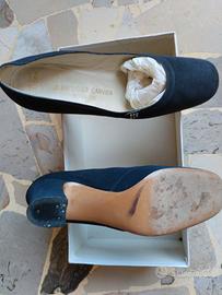 Décolleté in raso Blue con piccola guarnizione di strass. Vintage usate pochissimo
