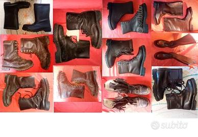 - anfibi militari, calzaturifici Pisano, Derisi, Battistini e Montebove, misure 39, 40, 41, 42 e 43 color testa di moro e neri. Nuovissimi, mai usati. Euro 40.