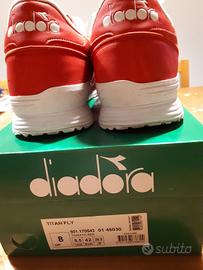 scarpe Diadora originali, n. 42, rosse e bianche, secondo paio di aghetti rossi.