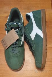 Vendo sneakers Diadora modello Tokyo, anni '80, con suola in gomma, di colore verde, NUOVE mai indossate. Taglia 45 - acquistate per errore, numero sbagliato. Scarpe originali, in perfette condizioni e complete di scatola. Possibilità di consegna a mano in zona, oppure spedizione a carico dell'acquirente.