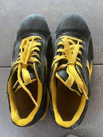 vendo scarpe DIADORA UTILITY antinfortunistiche da donna, taglia 38, modello Glove text low, usate poco, colore nero, calzatura di sicurezza bassa in S1P in tessuto rete e vitello scamosciato, puntale in alluminio 200J, calzata 10, fodera Air Mesh, plantare estraibile in EVA perforata, con inserto shock absorber. inserto anti-perforazione K SOLE e protezione del tallone in TPU