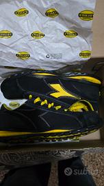 Scarpe Diadora antinfortunistiche nere gialle Colore nero con dettagli gialli. Lacci gialli. Logo Diadora giallo taglia 44