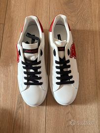 Scarpe portofino Dolce e Gabbana , nuove ancora in scatola . Completamente in pelle bianca con ricamo rosso . Taglia 44.5