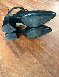 Scarpe donna eleganti in pelle scamosciata (suede) di colore nero. Misura 38; tacco 5 cm.