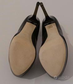 Propongo questo paio di scarpe con tacco molto alto (16 cm) e zeppa 5 cm, utilizzate per uno shooting fotografico. Le scarpe sono in nappa e le suole in pelle, utilizzate solo in casa. Complete di scatola