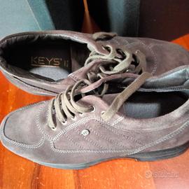 Scarpe tipo sneakers marca Keys, pelle camoscio colore testa di moro, suola in gomma, taglia 39. Usate pochissimo, nessun segno di usura