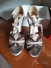 sandalo scamosciato con tacco 11/12 colore beige e marrone usate pochissimo, vendo per inutilizzo.nr.38