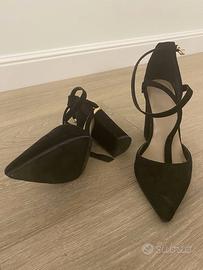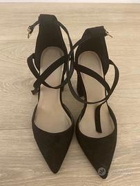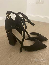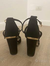 Scarpe donna ASOS nere con riporti dorati, eleganti, con allacciatura alla caviglia, effetto scamosciato, misura 39, vestibilità comoda.