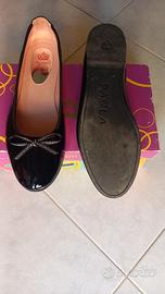 Vendo stupende scarpe donna ballerine vernice nere, indossate solo due volte, quindi praticamente nuove, perfette. Dettaglio fiocco con strass sulla punta. Numero 39 ( calzano leggermente strette, quindi 38/38,5 effettivo).