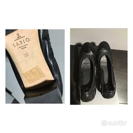 Scarpe donna ballerine con tacco ed elastico posteriore, marca Lario Como, tutte in pelle nuove mai usate ..