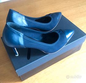 scarpe donna in pelle blu eleganti con tacco, seminuove usate pochissimo