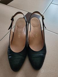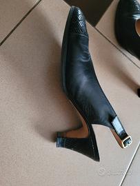 Sandalo donna nero chiuso davanti,in pelle numero 35 con tacco da 6 cm