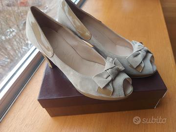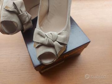 Scarpe Alta Moda. Nuove, usate solo per un evento di moda, in pelle color beige/sabbia, con tacco alto. Comodissime in quanto il tacco è confortevole come il plantare.