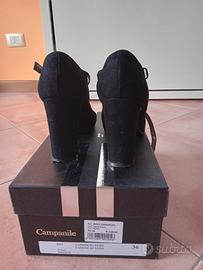 Scarpe Campanile originali in camoscio nero, n. 36, tacco 90. Utilizzate solamente in due occasioni, ben tenute. Visibili in zona Giardino di Roma
