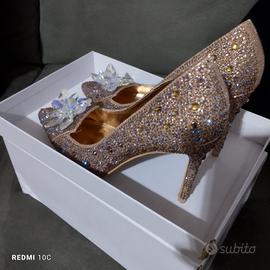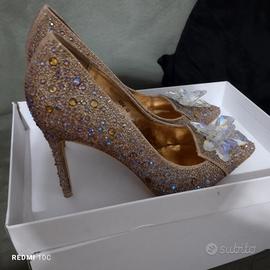 scarpe per donna da cerimonia con strass ,colore dorato e argento ,molto particolari nuovi mai usati per un problema al dito ,soltanto provati, taglia 40