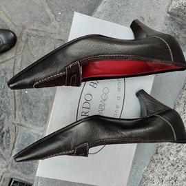 vendo scarpa donna colore moro lucido con patella in camoscio moro nm 36 1/2 in ottimo stato come da foto marchio Riccardo Banfi
