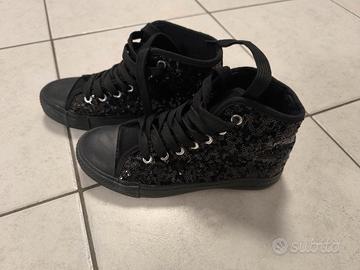 Vendo scarpe donna con paillettes nere numero 36. Usate pochissimo, in ottimo stato. Ritiro a Mairano (Brescia) oppure spedizione.