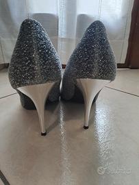 Scarpe donna numero 41 color argento, brillantinate, indossate una volta. Tacco a specchio.