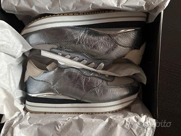 Vendo scarpe della Crime London da donna N. 38 in pelle colore argento e beige. NUOVE mai usate