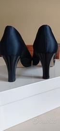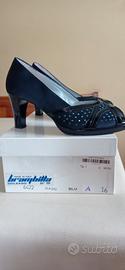 Scarpe donna da cerimonia in raso blu con brillantini, suola in cuoio. Realizzate artigianalmente le ho indossate una sola volta, pertanto sono in perfette condizioni. Tacco 7 cm, n. 36