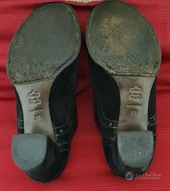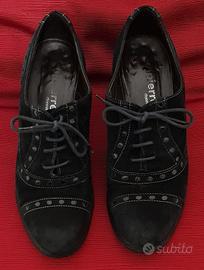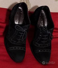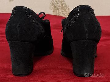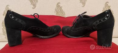 Scarpe donna camoscio e vera pelle 'DALPIERRE' con laccetti. Soletta in cuoio, suola in PARA, tacco in gomma. Altezza tacco cm.7- Taglia 37-Condizioni molto buone, usate poco.