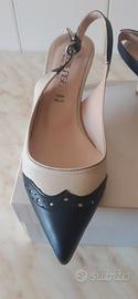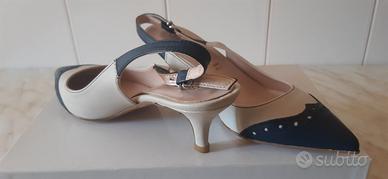 Scarpe décolleté aperte dietro in vera pelle numero 36 tacco 5 cm ideali per cerimonie, nuove mai usate