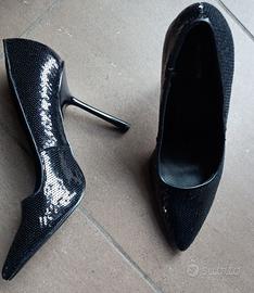 Scarpe décolleté tacco 10, misura 40, nere con paillettes, perfette per cerimonia.. Nuove, mai indossate, vendo per errato acquisto.