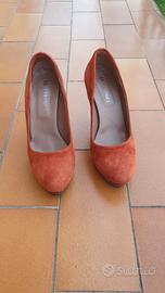 Eleganti scarpe da donna color rosso ruggine con un design unico.