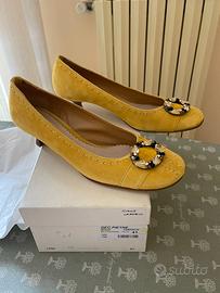 Vendo le seguenti calzature da donna in ottime condizioni: - Scarpe scamosciato giallo impreziosite con fibia n. 41 usate pochissimo. - Infradito da spiaggia n. 41.