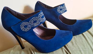 Scarpe donna scamosciate eleganti con cinturino da sera o per cerimonia, color blu elettrico.