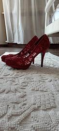vendo scarpe donna eleganti in pizzo e raso, misura 40 con tacco 10 e con plateau di 1,5 cm.
