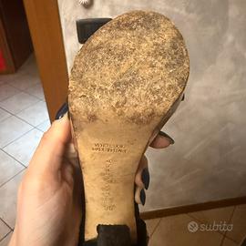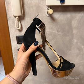 Usate ma tenute benissimo, tacco cambiato da poco. Vero cuoio, Made in italy. Super eleganti con bracciale strass che avvolge la caviglia . Super comode. La suola è leggermente rovinata ma non si accorge nemmeno. Tacco 12