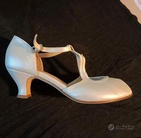 Vendo scarpe donna n.41 marca La Muneca, adatte da sposa o da ballo, in nappa perlata color avorio, con strass, tacco 6 cm, nuove mai usate, in scatola originale. Tel.3477950881 watsapp. Non spedisco: consegna a mano in Friuli Venezia Giulia